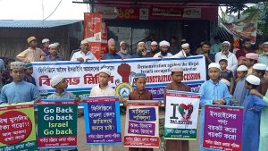 ফিলিস্তিনিদের ওপর ইসরায়েলি হামলার প্রতিবাদে রাঙামাটিতে বিক্ষোভ