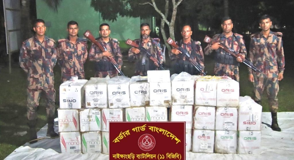 বান্দরবানে ১১ বিজিবির অভিযানে বিপুল পরিমান বার্মিজ সিগারেট জব্দ