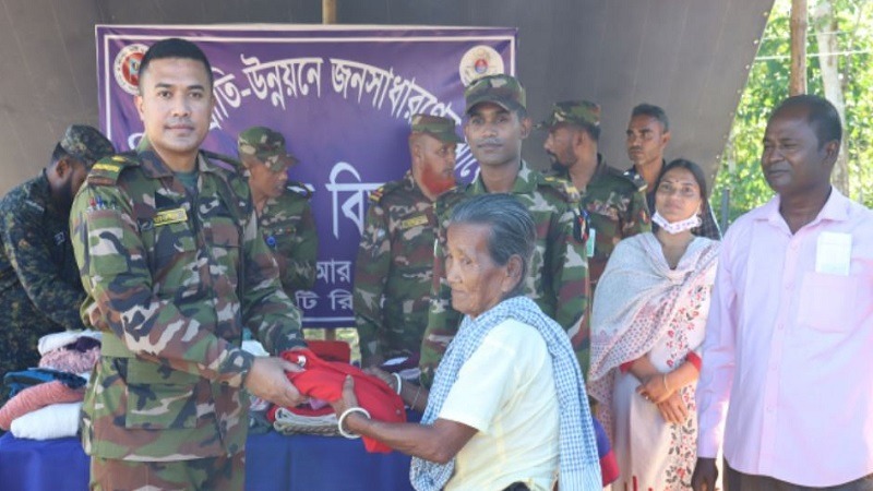 রাঙামাটিতে সেনাবাহিনী কর্তৃক অসহায়দের মাঝে শীতবস্ত্র বিতরণ