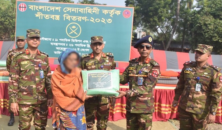 নাটোরে শীতার্তদের মাঝে সেনাবাহিনীর শীতবস্ত্র বিতরণ