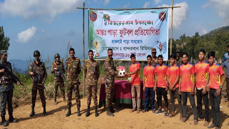 বান্দরবানের থানচি ও রুমা দুই উপজেলার সীমান্তবর্তী বাকলাইয়ে বিজয়ের মাস উপলক্ষে আন্তঃপাড়া ফুটবল টুর্নামেন্ট অনুষ্ঠিত হয়েছে।