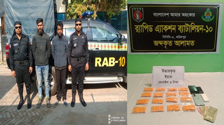 আমিনুল ইসলাম বলেন, ‘মাদক নির্মূলে র্যাবের নিয়মিত মাদক বিরোধী অভিযানের ধারাবাহিকতায় শনিবার দিবাগত রাত ২ টার দিকে র্যাব-১০ এর একটি আভিযানিক দল গোপন সংবাদের ভিত্তিতে রাজবাড়ী জেলার গোয়ালন্দ ঘাট এলাকার দৌলতদিয়া গোয়ালন্দ বাসস্ট্যান্ড এলাকায় একটি অভিযান পরিচালনা করে।