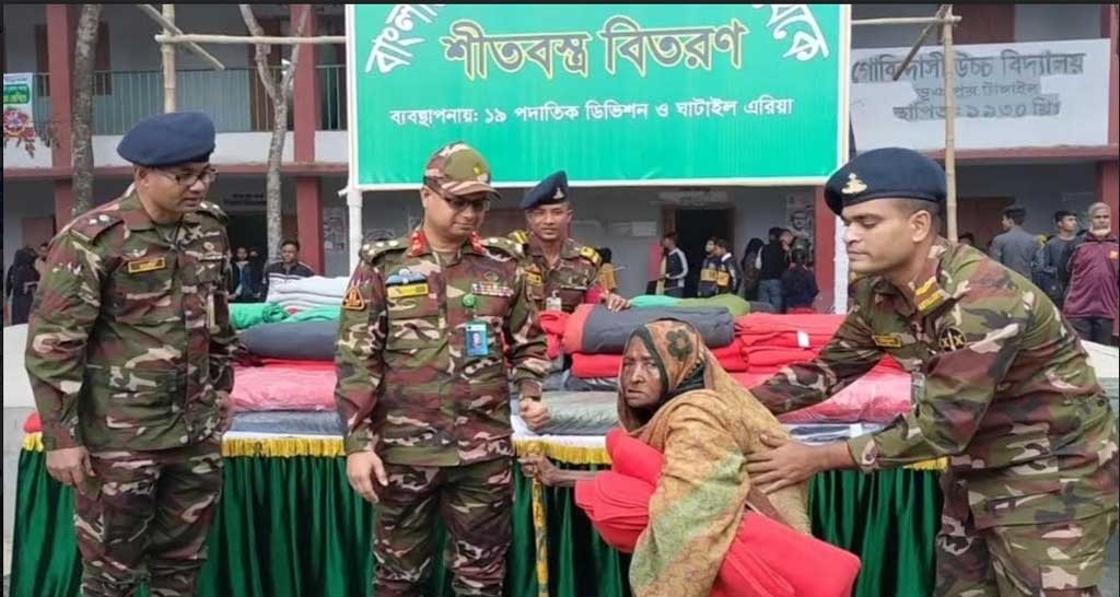 টাঙ্গাইলে শীতার্তদের মধ্যে শীতবস্ত্র বিতরণ করল সেনাবাহিনী