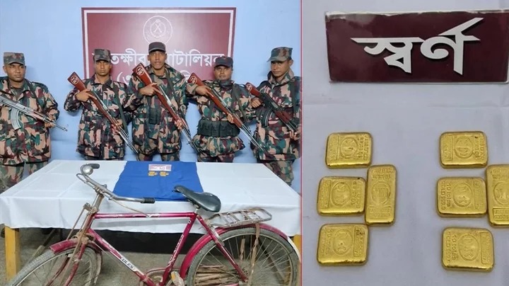 বিজ্ঞপ্তিতে বলা হয়েছে, সাতক্ষীরা সদর উপজেলার কালিয়ানী সীমান্তের বৈকারী এলাকা দিয়ে চোরাকারবারিরা বাইসাইকেলে করে স্বর্ণ পাচার করছে, এমন তথ্যের ভিত্তিতে রোববার কালিয়ানী বিওপির নায়েক মো. শাহাবুদ্দিনের নেতৃত্বে অভিযানে নামে বিজিবি। এসময় বিজিবি সদস্যদের দেখে বাইসাইকেল ফেলে পালিয়ে যায় চোরাকারবারিরা। পরে ফেলে যাওয়া বাইসাইকেল তল্লাশি করে সিটের নিচে পাইপের ভেতরে থাকা আটটি স্বর্ণের বার উদ্ধার করা হয়।