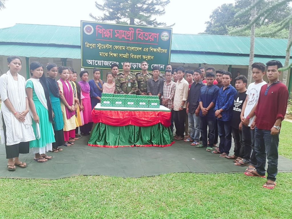 খাগড়াছড়িতে ত্রিপুরা স্টুডেন্টস ফোরামের শিক্ষার্থীদের মাঝে সেনাবাহিনীর শিক্ষা উপকরণ বিতরণ