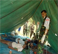 চিত্র-৪: সেনাবাহিনীর অস্থায়ী চিকিৎসা কেন্দ্রে অসুস্থদের চিকিৎসা সেবা দেয়া হচ্ছে