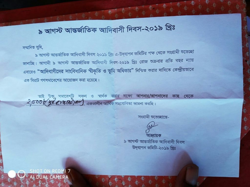 আন্তর্জাতিক আদিবাসী দিবসকে ঘিরে বাঘাইছড়িতে উপজাতি আঞ্চলিক সংগঠনের চাঁদাবাজি