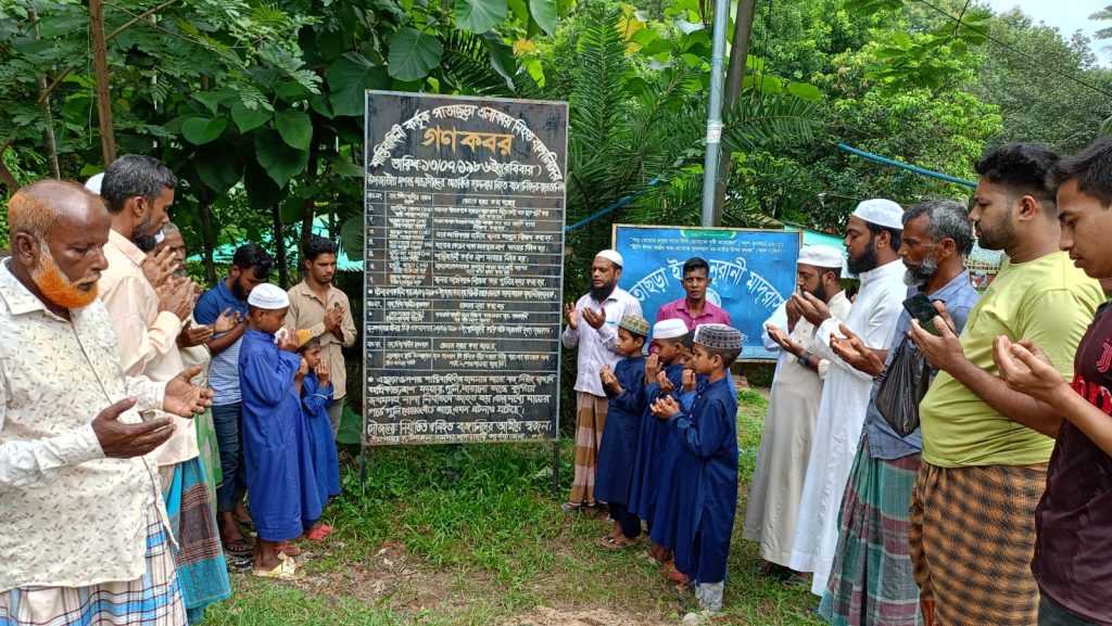 পাতাছড়া জামে মসজিদের খতিব মাওলানা মোঃ আবু হানিফে নেতৃত্বে দোয়া মোনাজাতে অংশ নেন গণহত্যায় নিহত আদম ছফি উল্লাহ’র ছেলে মোঃ ইয়াছিন ও আবু ইউসুফ, ছবুরী খাতুনের ছেলে নজরুল ইসলাম, হালিমা বেগমের ছেলে মোঃ নাছিরসহ সমাজ কমিটির সভাপতি মোঃ মন্তাজ মিয়া, মোঃ ইব্রাহিম খলির, মোঃ সেলিম মিয়া, আল-আমিন, শিমুল, সাইফুল ইসলাম প্রমূখ।