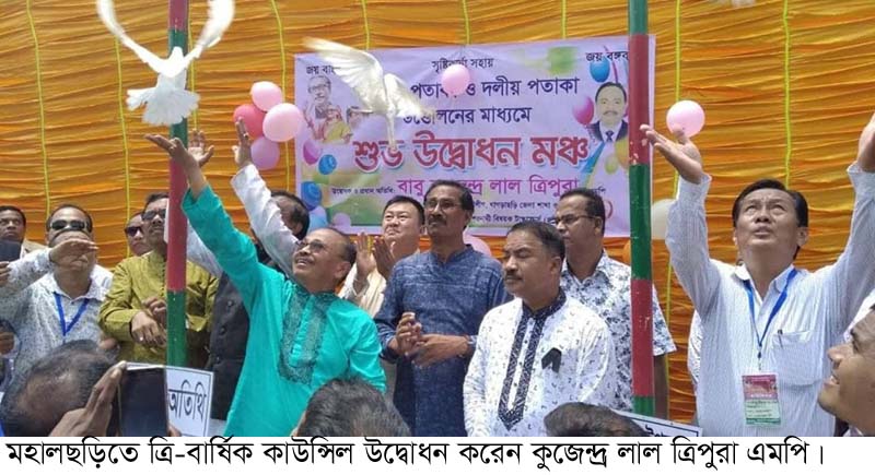 জাতীয় পতাকা উত্তোলন ও শান্তির প্রতিক পায়রা উড়িয়ে সকালের অধিবেশন উদ্বোধন করেন প্রধান অতিথি খাগড়াছড়ি জেলা আওয়ামীলীগ এর সভাপতি ও সাংসদ কুজেন্দ্র লাল ত্রিপুরা এমপি।
