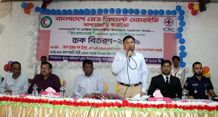 খাগড়াছড়ি রেড ক্রিসেন্ট সোসাইটির ভাইস চেয়ারম্যান এ্যাড. জসিম উদ্দিন মজুমদারের সভাপতিত্বে চেক বিতরণী অনুষ্ঠানে প্রধান অতিথি হিসেবে উপস্থিত ছিলেন খাগড়াছড়ি পার্বত্য জেলা পরিষদ চেয়ারম্যান কংজরী চৌধুরী।