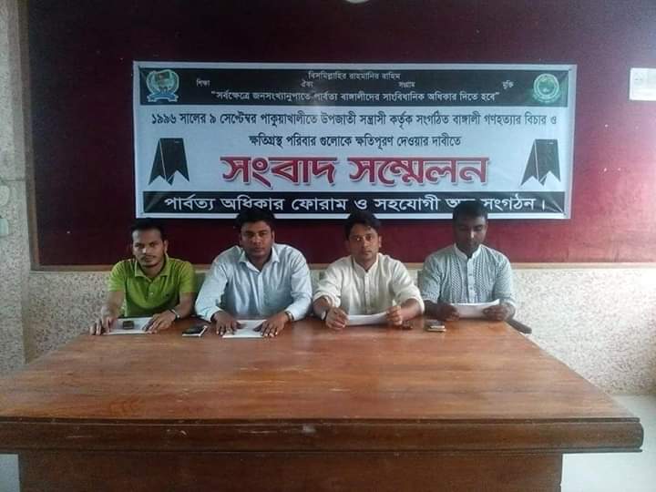 পাকুয়াখালী উপজাতি সন্ত্রাসী কর্তৃক ৩৫ জন বাঙালি কাঠুরিয়া হত্যার বিচার ও ক্ষতিগ্রস্ত পরিবার গুলোর ক্ষতিপূরণের দাবিতে সংবাদ সম্মেলন করেছে পার্বত্য অধিকার ফোরাম ও সহযোগী অঙ্গ-সংগঠনের নেতৃবৃন্দ।