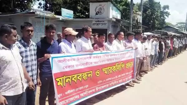 মঙ্গলবার (১৭ সেপ্টেম্বর) সকাল সাড়ে দশটায় আলীকদম প্রেসক্লাবের সামনে ‘সম্মিলিত ছাত্র ও যুব সমাজ’ এর ব্যানারে এ মানব বন্ধন অনুষ্ঠিত হয়। মানববন্ধনে স্থানীয় শিক্ষিত বেকার ছাত্র-ছাত্রী ছাড়াও বিভিন্ন দলের বিপুল সংখ্যক নেতাকর্মীর উপস্থিতি লক্ষ্য করা গেছে। মানববন্ধন শেষে ৫টি অনুচ্ছেদে জেলা প্রশাসক বরাবর লিখিত এক স্মারকলিপি উপজেলা নির্বাহী অফিসার কার্যালয়ে প্রদান করা হয়।