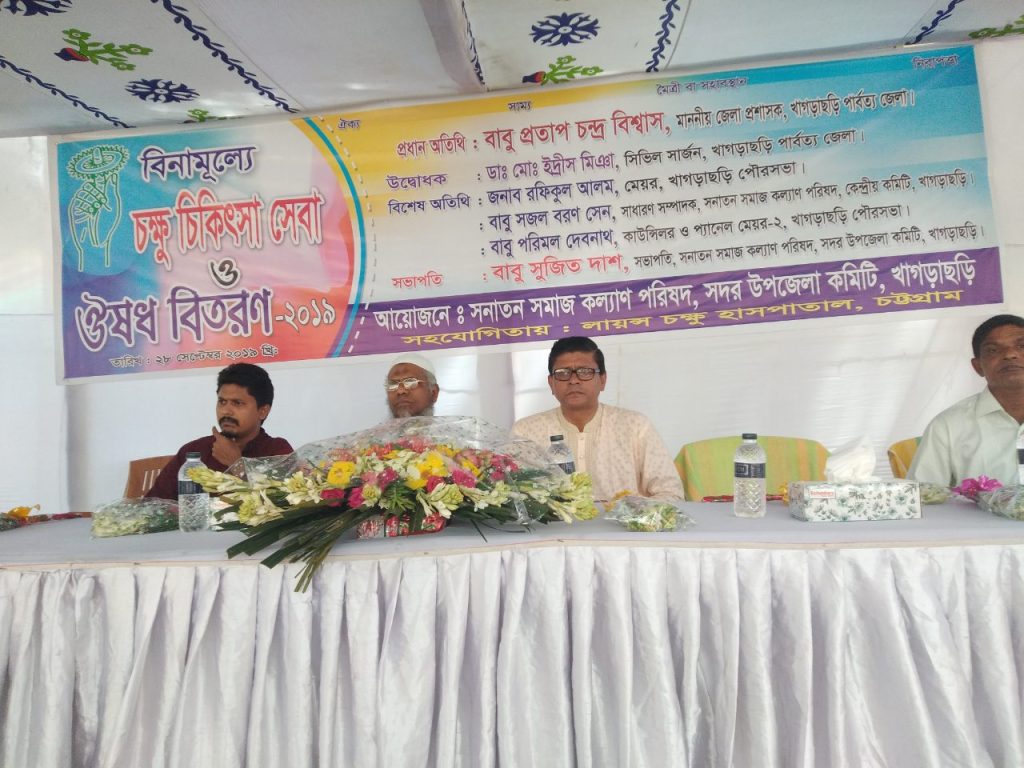 সনাতন সমাজ কল্যান পরিষদ, খাগড়াছড়ি সদর উপজেলা কমিটির আয়োজনে ২৮ সেপ্টেম্বর শনিবার খাগড়াছড়ি জেলা শিশু সরকারি প্রাথমিক বিদ্যালয়ে মাঠে বিনামূল্যে চক্ষু চিকিৎসা সেবা ও ঔষধ বিতরণ অনুষ্ঠানের আয়োজন করা হয়।