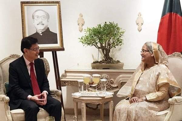 প্রধানমন্ত্রী শেখ হাসিনা মিয়ানমার থেকে জোরপূর্বক বাস্তুচ্যুত রোহিঙ্গাদের দ্রুত প্রত্যাবাসনে সিঙ্গাপুরের সহযোগিতা কামনা করেছেন। শুক্রবার (৪ঠা অক্টোবর) নয়াদিল্লীতে সিঙ্গাপুরের উপ-প্রধানমন্ত্রী হেং সুয়ি কিট’র সঙ্গে সৌজন্য সাক্ষাৎকালে প্রধানমন্ত্রী বলেন, ‘রোহিঙ্গারা বাংলাদেশের জন্য একটি বড় বোঝা। সিঙ্গাপুর নানাভাবে মিয়ানমারের সঙ্গে জড়িত রয়েছে। রোহিঙ্গাদের দ্রুত প্রত্যাবাসনে সিঙ্গাপুর গুরুত্বপূর্ণ ভূমিকা পালন করতে পারে।’ বৈঠক শেষে পররাষ্ট্র সচিব শহীদুল হক এ ব্যাপারে সাংবাদিকদের অবহিত করেন।
