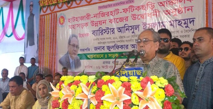 চট্টগ্রামের হাটহাজারী-নাজিরহাট-খাগড়াছড়ি আঞ্চলিক মহাসড়কের ৩২ কিলোমিটার অংশে ১৮ ফুট প্রস্থের সড়ককে ৩৪ ফুট প্রস্থে সম্প্রসারণ কাজের উদ্বোধন করেছেন সংসদ সদস্য ও সাবেক মন্ত্রী ব্যারিস্টার আনিসুল ইসলাম মাহমুদ। রবিবার (৬ অক্টোবর) বিকেল ৫টায় হাটহাজারী বাসস্টেশন (জিরো পয়েন্টে) তিনি প্রায় ৪০০ কোটি টাকা ব্যয়ে এ উন্নয়ন কাজের উদ্বোধন করেন।