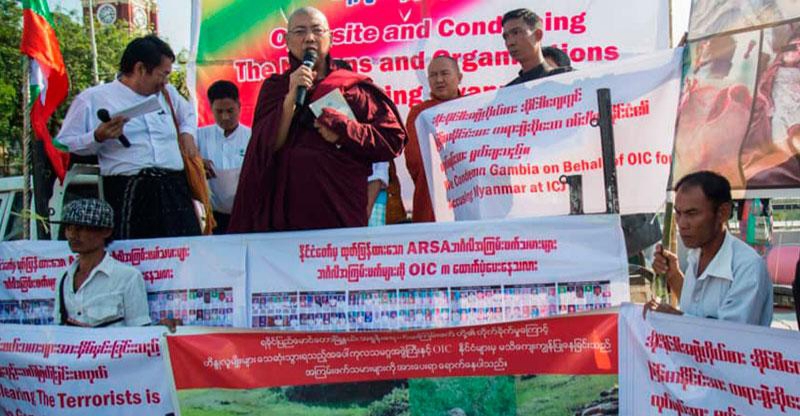 রোহিঙ্গা গণহত্যার দায়ে মিয়ানমারের বিরুদ্ধে গাম্বিয়ার মামলা, প্রতিবাদে বৌদ্ধ ভিক্ষুদের বিক্ষোভ
