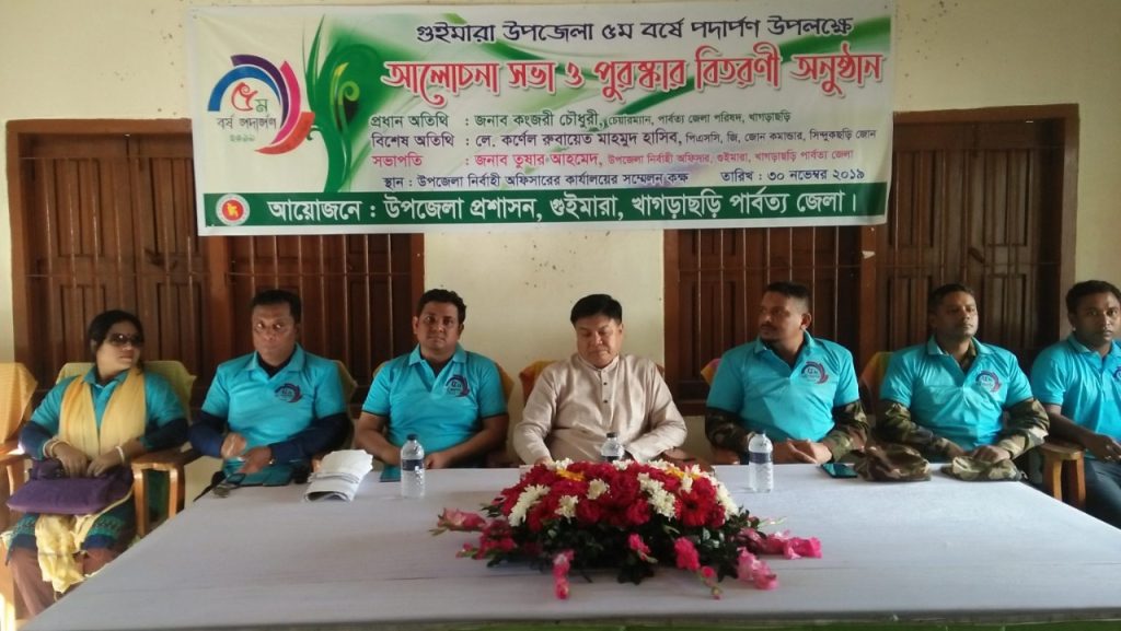 ২০১৪ সালে প্রধানমন্ত্রীর ঘোষনার মধ্য দিয়ে মাটিরাঙ্গা, মহালছড়ি ও রামগড়ের থেকে আলাদা হয়ে গঠিত গুইমারা উপজেলার ৫ম প্রতিষ্ঠাবার্ষিকী আজ। নানা আয়োজনে দিবসটি পালন করেছে উপজেলা প্রশাসন, উপজেলা আওয়ামীলীগসহ বিভিন্ন সংগঠন। এ উপলক্ষ্যে সকলের সমন্বয়ে ৩০ নভেম্বর শনিবার সকাল দশটায় জমকালো এক বিশাল আনন্দ র্যালী বের করা হয়। আনন্দ র্যালীটি গুইমারা মডেল হাই স্কুল মাঠ প্রাঁঙ্গন থেকে বের হয়ে উপজেলা পরিষদে এসে শেষ হয়। পরে উপজেলা নির্বাহী কর্মকর্তা তুষার আহমেদ এর সভাপতিত্বে উপজেলা হলরুমে আলোচনা সভা অনুষ্ঠিত হয়। সভায় প্রধান অতিথি হিসেবে উপস্থিত ছিলেন খাগড়াছড়ি জেলা পরিষদের চেয়ারম্যান কংজরী চৌধুরী।