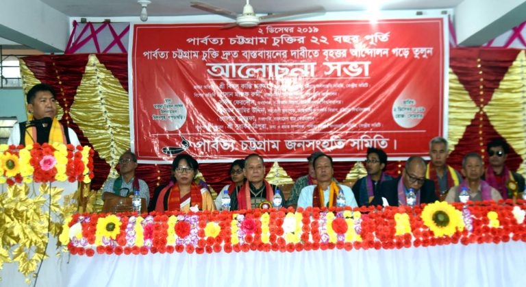 আলোচনা সভায় পার্বত্য চট্টগ্রাম জনসংহতি সমিতির কেন্দ্রীয় তথ্য ও প্রচার সম্পাদক সুধাকর ত্রিপুরার সভাপতিত্বে প্রধান অতিথি হিসেবে উপস্থিত ছিলেন সংগঠনটির কেন্দ্রীয় কমিটির সিনিয়র সহ-সভাপতি ও মহালছড়ি উপজেলা চেয়ারম্যান বিমল কান্তি চাকমা।