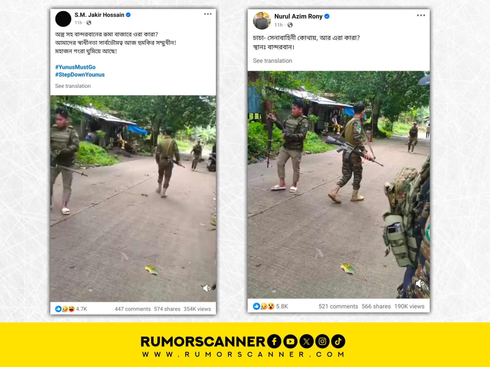 রিউমর স্ক্যানার টিমের অনুসন্ধানে জানা যায়, আলোচিত ভিডিওটি বান্দরবানের রুমায় কেএনএফ সদস্যদের অস্ত্রসহ প্রকাশ্যে ঘোরাফেরার দৃশ্য নয়। বরং, এটি ফিলিপাইনের সশস্ত্র গোষ্ঠী মোরো ইসলামিক লিবারেশন ফ্রন্ট (এমআইএলএফ)-এর একটি ভিডিও।