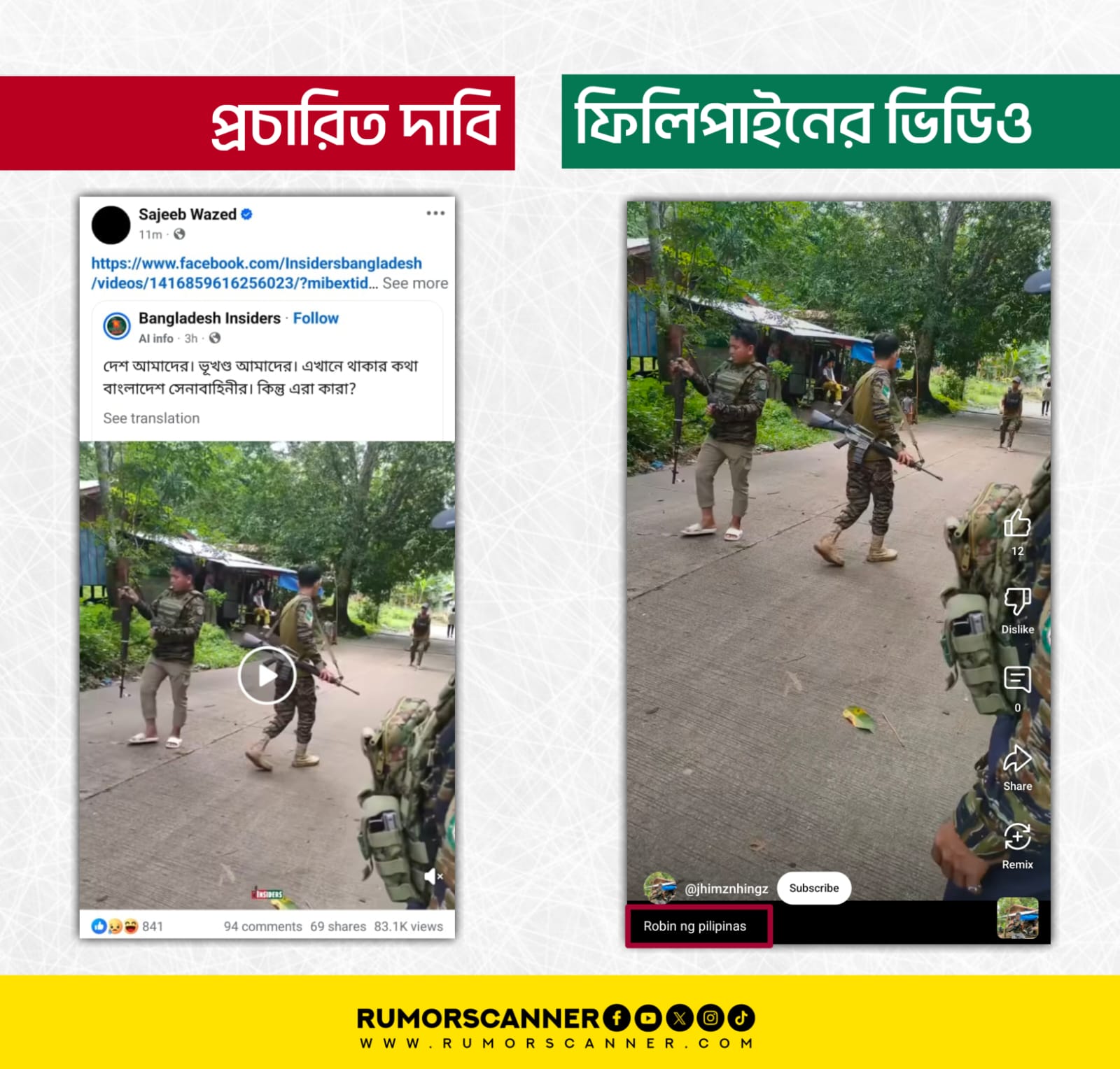 গত ৩১ জুলাই ‘Basilan Biaf’ নামের একটি ফেসবুক অ্যাকাউন্টেও একই ভিডিও প্রকাশিত হয়। ভিডিওটির ক্যাপশনে ফিলিপিনো ভাষায় লেখা হয়, ‘নিজেকে এমন মানুষ দিয়ে ঘিরে রাখো যারা তোমাকে সম্মান করে, যারা তোমার ব্যক্তিত্বকে ছোট করে তাদের কাছে আসতে দেওয়া উচিত নয়।’ অ্যাকাউন্টের ট্রান্সপারেন্সি সেকশনে দেখা যায়, এটি ফিলিপাইন থেকে পরিচালিত হচ্ছে।