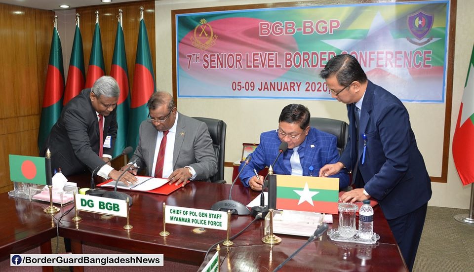 ‘যৌথ আলোচনার দলিল’ স্বাক্ষরের মধ্য দিয়ে বর্ডার গার্ড বাংলাদেশ (বিজিবি) এবং মায়ানমার পুলিশ ফোর্স (এমপিএফ) এর সিনিয়র পর্যায়ের ৫ দিনব্যাপী (০৫-০৯ জানুয়ারি ২০২০) ৭ম সীমান্ত সম্মেলন অত্যন্ত আন্তরিক ও সৌহার্দ্যপূর্ণ পরিবেশে শেষ হয়েছে।