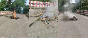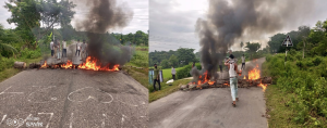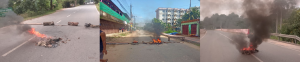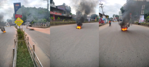 জেলার গুইমারা উপজেলার খাগড়াছড়ি-ঢাকা ও খাগড়াছড়ি- চট্টগ্রাম মহাসড়কের জোড়া ব্রীজ এলাকায় সড়কে গাছের গুড়ি ফেলে অকটেন দেয়ে আগুন জ্বালিয়ে সড়কে যান চলাচল বন্ধ করে দেয় সন্ত্রাসীরা। অভিযোগ উঠেছে, সকালে এই সড়কে যাতায়াতকারী কয়েকজন মোটরসাইকেল ও সিএনজি চালককে মারধর করেছে ইউপিডিএফ সন্ত্রাসীর। আতঙ্ক ছড়িয়ে পুরো উপজেলা জুড়ে।