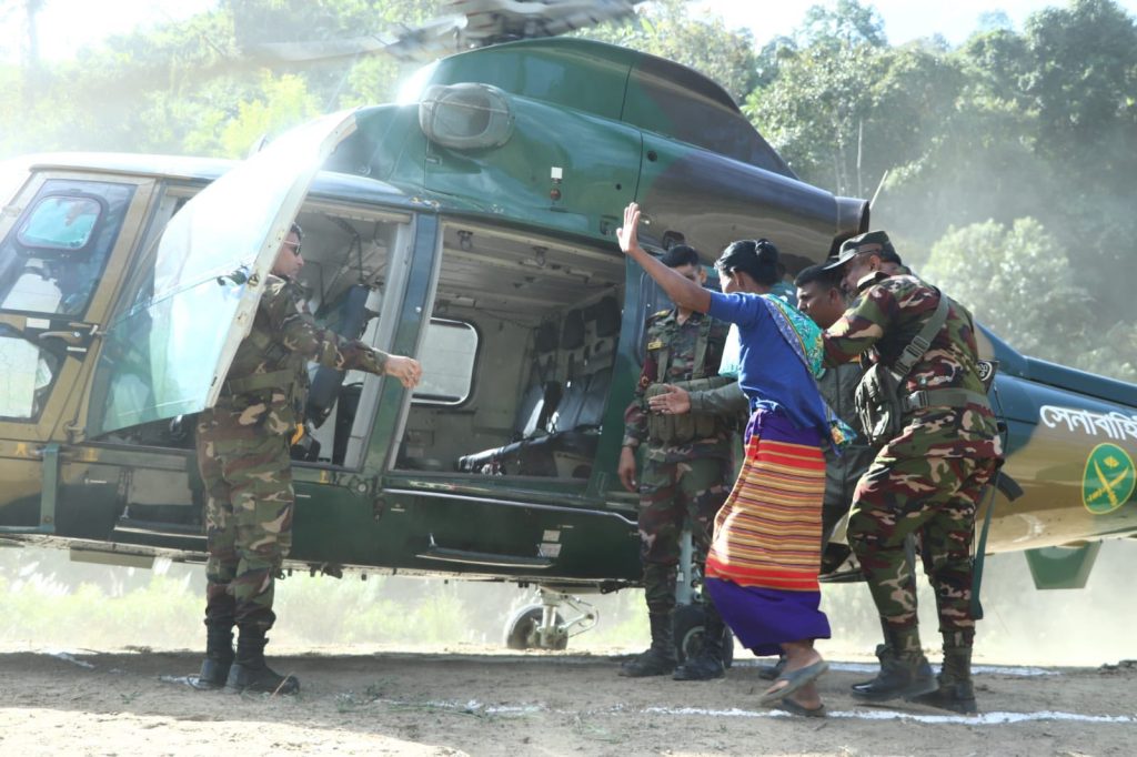 রাঙামাটি পার্বত্য জেলার বিলাইছড়ি উপজেলার আন্তর্জাতিক সীমান্তসংলগ্ন অত্যন্ত দুর্গম মাইনদারছড়া মুখ পাড়ায় বিশেষ সামরিক অভিযান পরিচালনাকালে গুরুতর অসুস্থ এক পাহাড়ি নারীকে হেলিকপ্টার যোগে চট্টগ্রাম সিএমএইচে স্থানান্তর করেছে সেনাবাহিনী।