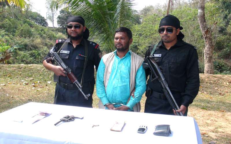 রাঙামাটিতে অভিযান চালিয়ে অস্ত্র, টাকাসহ ইউপিডিএফ (প্রসীত) ও জেএসএসের (সন্তু) চাঁদা কালেক্টর শংকদীশ কুমার বড়ুয়া আটক করেছে যৌথবাহিনীর সদস্যরা। আটককৃত শংকদীশ কুমার বড়ুয়া রাঙামাটির কতুকছড়ির বাসিন্দা। যৌথবাহিনী সূত্রে জানা যায়, রাঙামাটির বিভিন্ন গাছ ব্যবসায়ী থেকে জেএসএস (সন্তু) ও ইউপিডিএফের (প্রসীত) পক্ষে শংকদীশ কুমার বড়ুয়া চাঁদাবাজি করছে এমন গোপন সংবাদের ভিত্তিতে রাঙামাটি রিজিয়নের সেনাবাহিনীর একটি দল ও র্যাব-৭ ৩রা মার্চ মঙ্গলবার রাঙামাটির কতুকছড়িতে যৌথভাবে অভিযান চালায়। এসময় শংকদীশ কুমার বড়ুয়াকে আটক করে যৌথবাহিনী। এসময় তার কাছ থেকে ১টি অস্ত্র, ৩ রাউন্ড রিভলবারের গুলি ও নগদ টাকা উদ্ধার করা হয়।