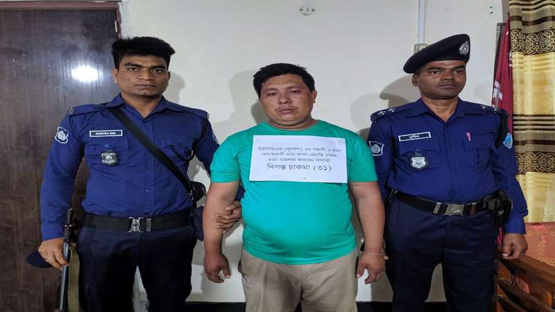 ইউপিডিএফ (গণতান্ত্রিক)’র প্রতিষ্ঠাতা আহবায়ক তপন জ্যোতি চাকমা বর্মাসহ ৪জন পাহাড়ী ও ১জন বাঙ্গালী হত্যা মামলার অন্যতম আসামী দিগন্ত চাকমা (৩১)কে আটক করেছে নিরাপত্তাবাহিনীর সদস্যরা। জানা গেছে গোয়েন্দা তথ্যের ভিত্তিতে গত ২রা মার্চ সোমবার রাতে অভিযান চালিয়ে তাকে আটক করা হয়। এরপর ৩রা মার্চ মঙ্গলবার তাকে নানিয়ারচর থানা পুলিশের কাছে হস্তান্তর করা হয়েছে।