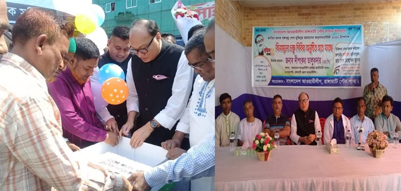 এদিকে রাঙামাটি পৌর আ’লীগের নেতৃত্বে রাঙামাটি শহরের বনরূপা এলাকায় বিনামূল্যে চক্ষু শিবির এর আয়োজন করা হয়েছে। চক্ষু শিবির পরিচালনা করছেন, ডা: শেখ মোহাম্মদ মুরাদ। দলটির পক্ষ থেকে জানানো হয়, বঙ্গবন্ধুর জন্মশত বার্ষিকীকে চিরস্মরণীয় করে রাখতে এ মহতি উদ্যোগ হাতে নেওয়া হয়েছে। ধনী-গরীর আগ্রহী সকল রোগী বিনামূল্যে দিনব্যাপী এ সেবা নিতে পারবেন বলে দলটির পক্ষ থেকে নিশ্চিত করা হয়।