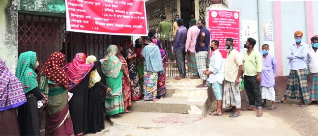 ছবি- রাঙামাটি পৌরসভার ১নং ওয়ার্ডের (ওএমএস) ডিলার প্রতাপ দাশের দোকানে ১০টাকা দরে চাল ক্রয় করতে আসা উৎসুক জনতা।