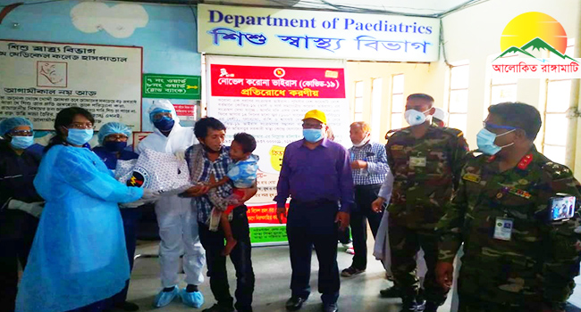 বাংলাদেশ সেনাবাহিনীর চট্টগ্রাম সেনানিবাসস্থ ২৪ পদাতিক ডিভিশনের সর্বাত্নক সহযোগিতা ও নিবিড় তত্বাবধানে দীর্ঘ ১৮ দিন যাবত চট্টগ্রাম মেডিকেল কলেজ ও হাসপাতালে চিকিৎসাধীন থাকার পর গত ১১ এপ্রিল শনিবার সকাল ১১ টায় রাঙামাটি পার্বত্য জেলার সাজেকস্থ দুর্গম শিয়ালদহ পাড়ার ৫ জন হাম ও নিউমোনিয়ায় আক্রান্ত ত্রিপুরা শিশু সম্পূর্ণ সুস্থ হওয়ার প্রাক্কালে তাদেরকে বাবা-মায়ের কোলে ফিরিয়ে দেবার সময় এসব কথা বলেন তিনি।