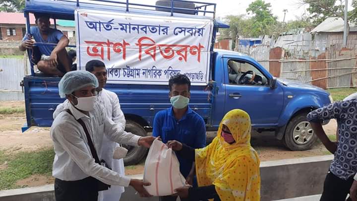 পার্বত্য চট্টগ্রাম নাগরিক পরিষদ কেন্দ্রীয় কমিটির চেয়ারম্যান আলকাছ আল মামুন ভূঁইয়া ও মহাসচিব আলমগীর কবির এর সার্বিক নির্দেশনা ও সহযোগীতায় পার্বত্য চট্টগ্রাম নাগরিক পরিষদের উদ্যোগে খাগড়াছড়ি জেলায় চলমান ত্রাণ বিতরণের ১১তম ধাপে ২৪ এপ্রিল শুক্রবার বিকালে খাগড়াছড়ি সদর উপজেলার গঞ্জপাড়া, ভুয়াছড়ি, সদর এলাকাসহ প্রায় দেড় শতাধিক পরিবারের মাঝে প্রয়োজনীয় খাদ্য-সামগ্রী বিতরণ করেন পার্বত্য চট্টগ্রাম নাগরিক পরিষদের নেতৃবৃন্দ।