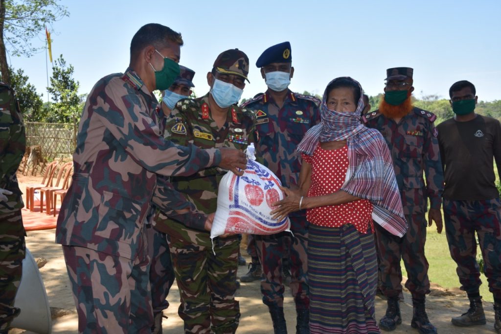 যার প্রেক্ষিতে আজ ৭ মে বাংলাদেশ সেনাবাহিনীর ২৪ পদাতিক ডিভিশনের (চট্টগ্রাম সেনানিবাস) সার্বিক সহযোগিতা ও তত্বাবধানে ‘আর্মি এভিয়েশন’-এর একটি বিশেষ হেলিকপ্টারযোগে ঐ সমস্ত এলাকায় ৪০০০ কেজি ওজনের বিভিন্ন প্রকার ত্রাণ সামগ্রী পৌঁছে দেয়া হয়েছে।